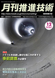 今月の特集は先月に続き「既設構造物間における推進施工技術」の「直接発進と直接到達」です。都市部の地下空間には、上下水道、ガス、電気、通信等のライフラインが縦横に敷設され、さらには鉄道、道路、共同溝といった極めて重要な構造物が多く建設されています。そのうえで成り立っている社会・経済活動に大きな影響を与えることなく維持しながら、過去に建設された建築物・構造物等を新陳代謝し、さらに新しい防災施設やライフラインの建設を進めることが求められています。
