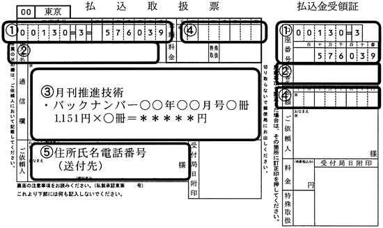 バックナンバーの購入をご希望の場合は、郵便局備え付けの払込取扱票に必要事項を記入の上、本誌発行所宛てに送金してください。