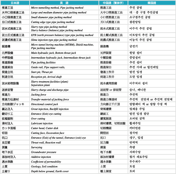 そこで、編集室では推進技術の国際交流に欠かせない「推進工法技術用語対訳集」の充実を、読者の皆様のご協力を得て図って参りたいと考えています。